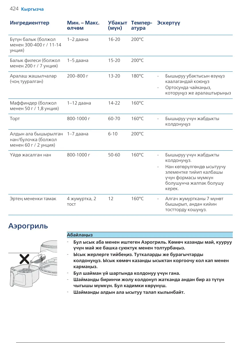 200–800 г 13-20 180°C - Бышыруу убактысын өзүңүз