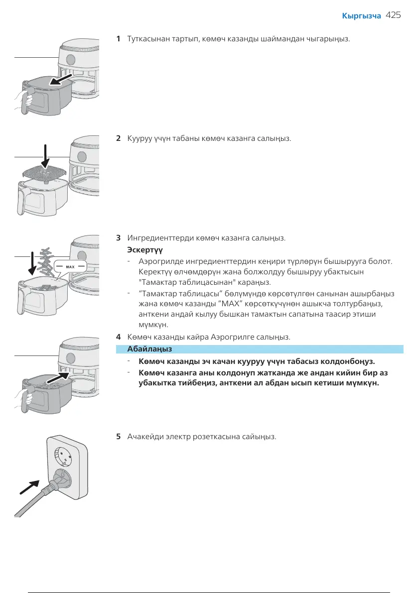 жана көмөч казанды “MAX” көрсөткүчүнөн ашыкча толтурбаңыз,