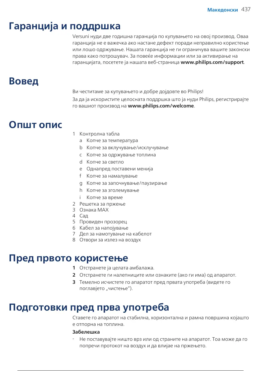 гаранцијата, посетете ја нашата веб-страница www.philips.com/support.