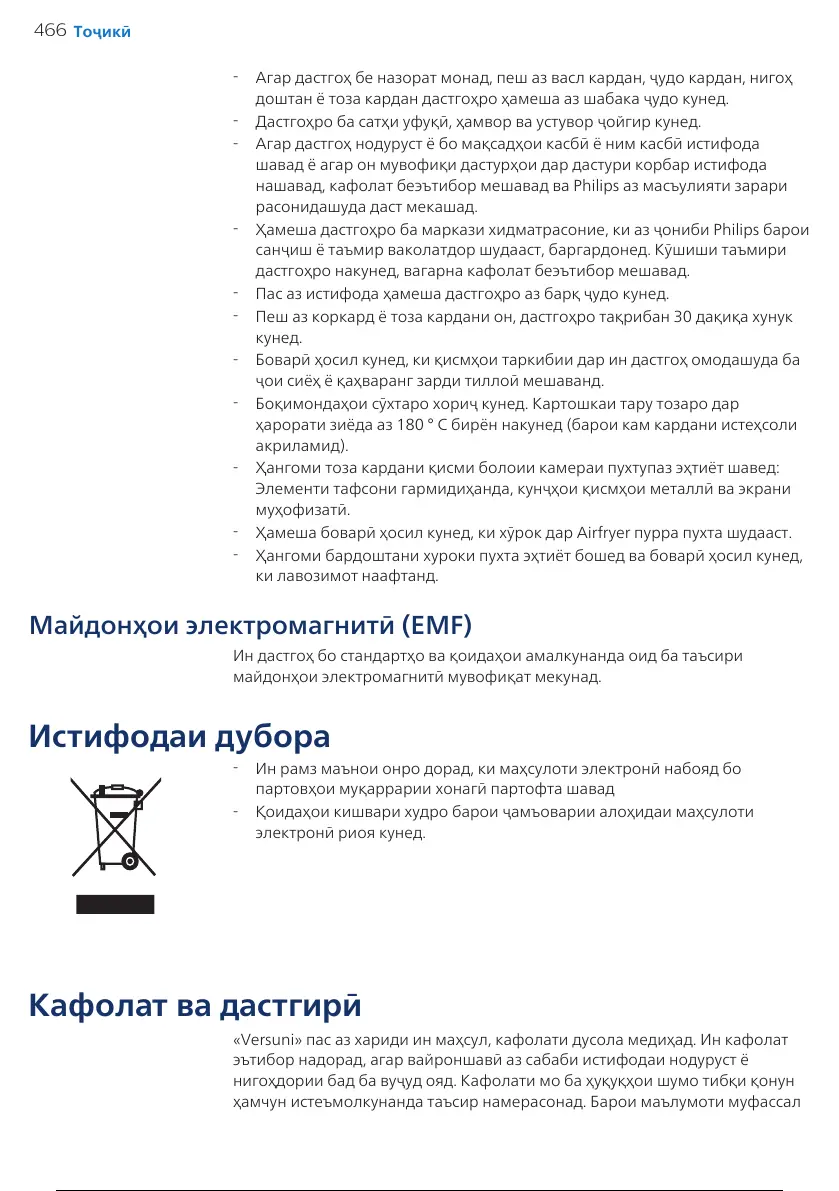 нашавад, кафолат беэътибор мешавад ва Philips аз масъулияти зарари