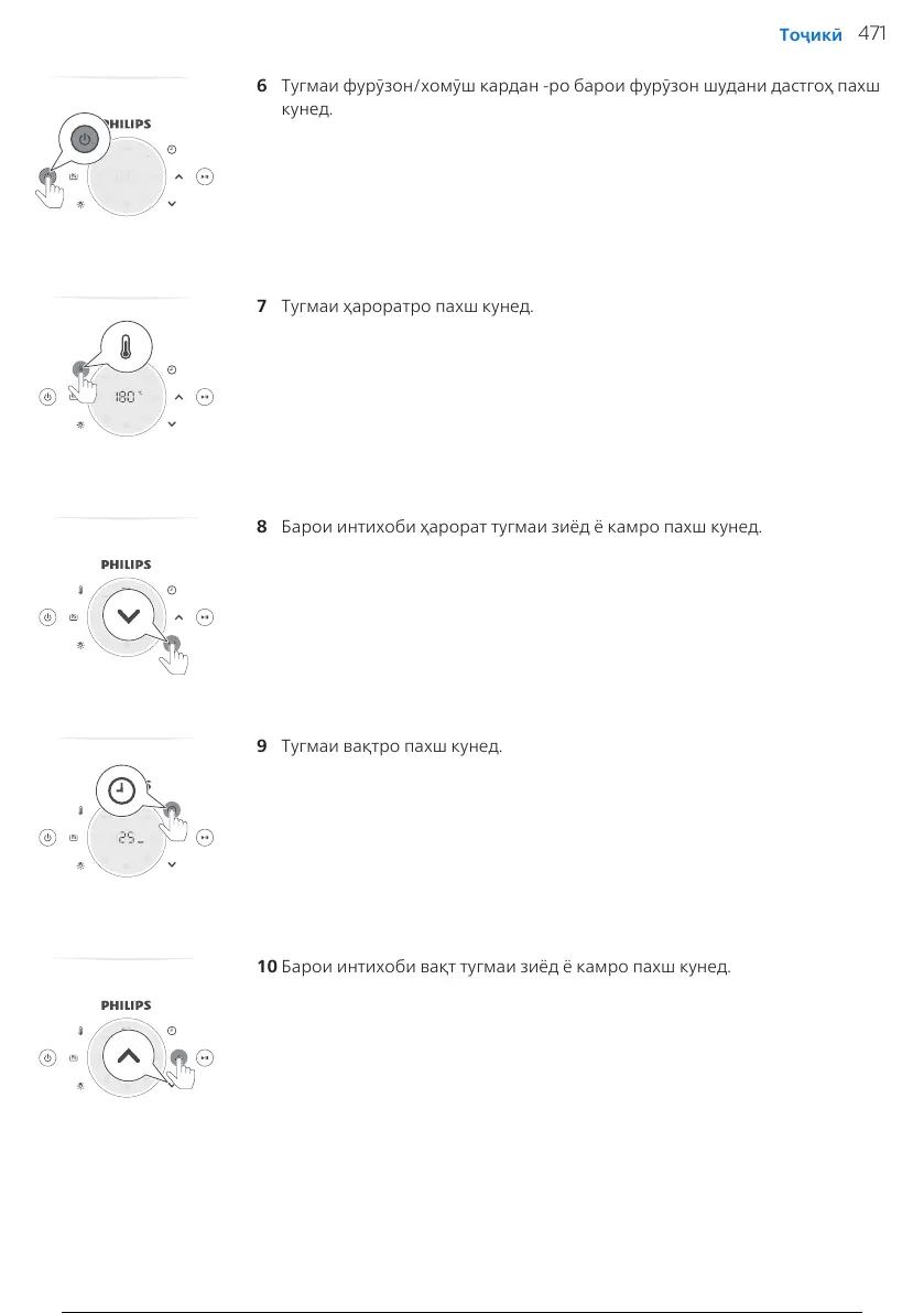 8 Барои интихоби ҳарорат тугмаи зиёд ё камро пахш кунед.