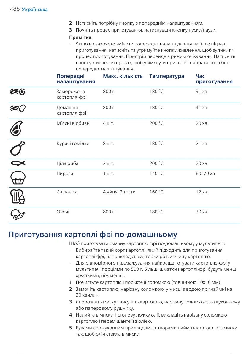 мультипечі порціями по 500г. Більші шматки картоплі-фрі будуть менш