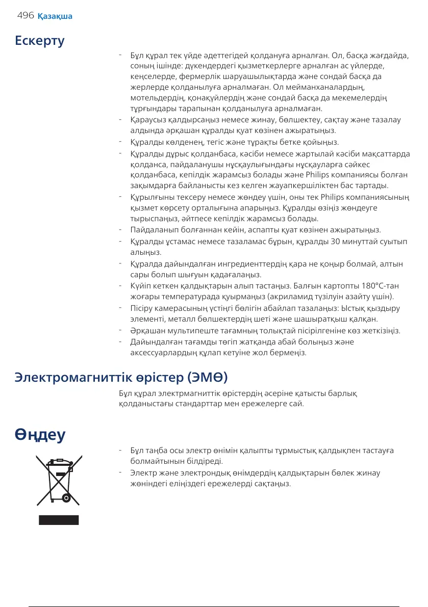 Бұл таңба осы электр өнімін қалыпты тұрмыстық қалдықпен тастауға