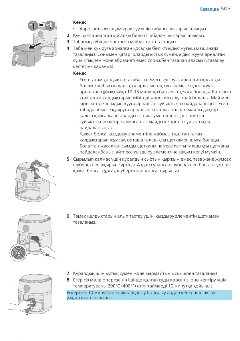 6 Тамақ қалдықтарын алып тастау үшін, қыздыру элементін щеткамен