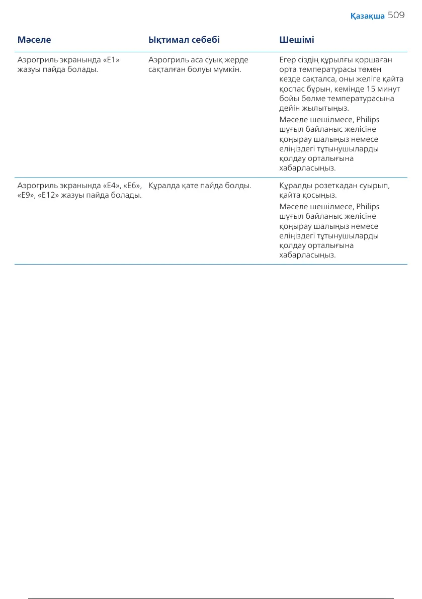 Құралда қате пайда болды. Құралды розеткадан суырып,