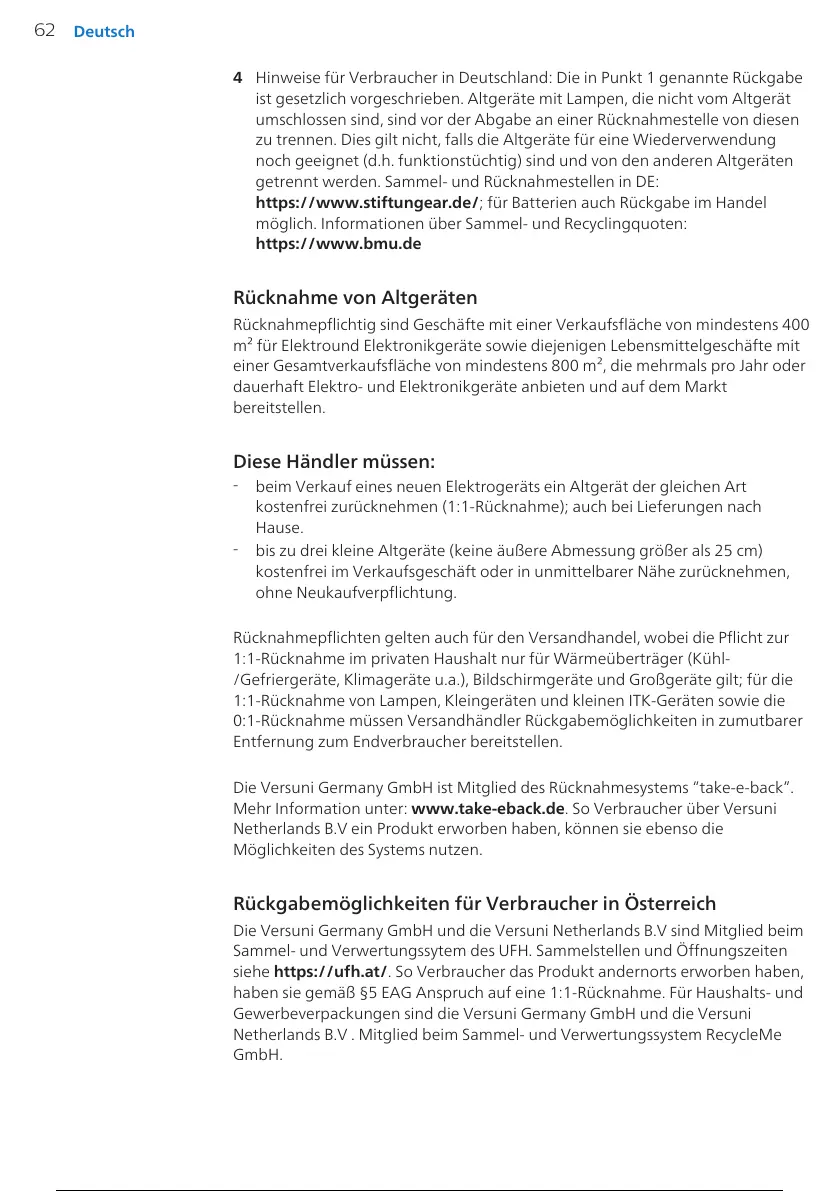Mehr Information unter: www.take-eback.de. So Verbraucher über Versuni