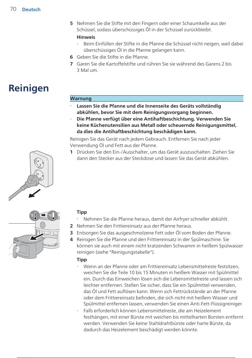 Nehmen Sie die Pfanne heraus, damit der Airfryer schneller abkühlt.