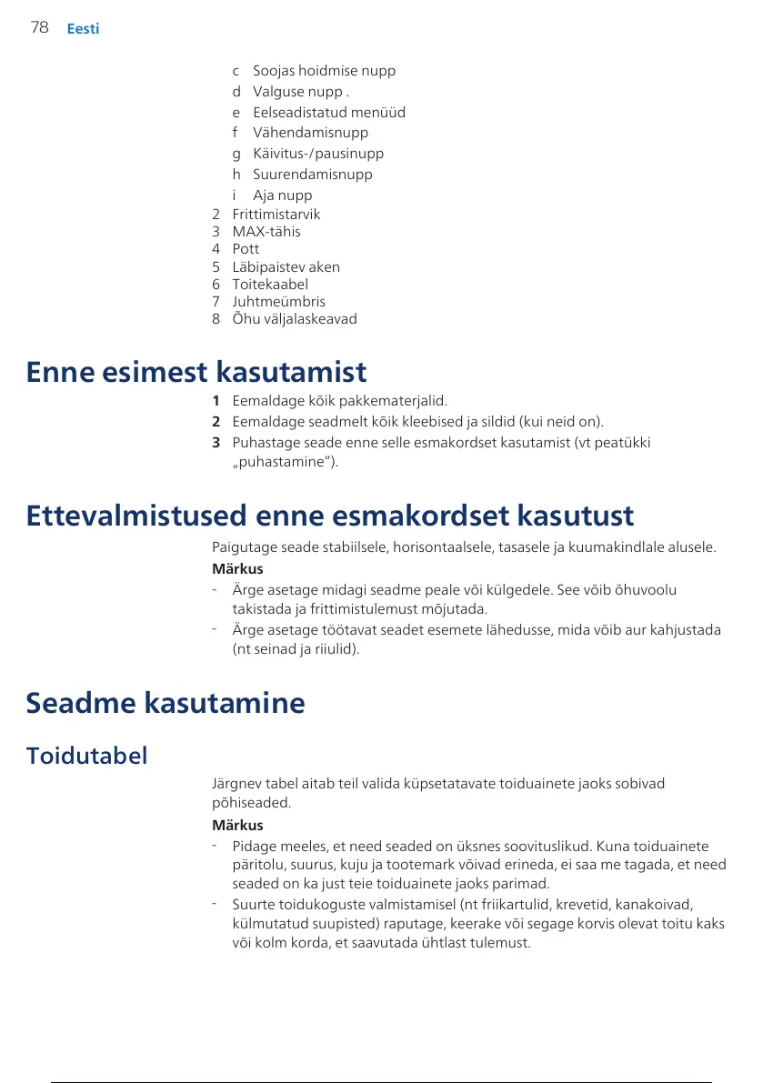 Suurte toidukoguste valmistamisel (nt friikartulid, krevetid, kanakoivad,