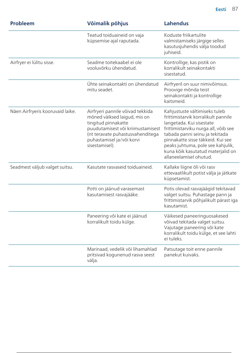 Airfryer ei lülitu sisse. Seadme toitekaabel ei ole