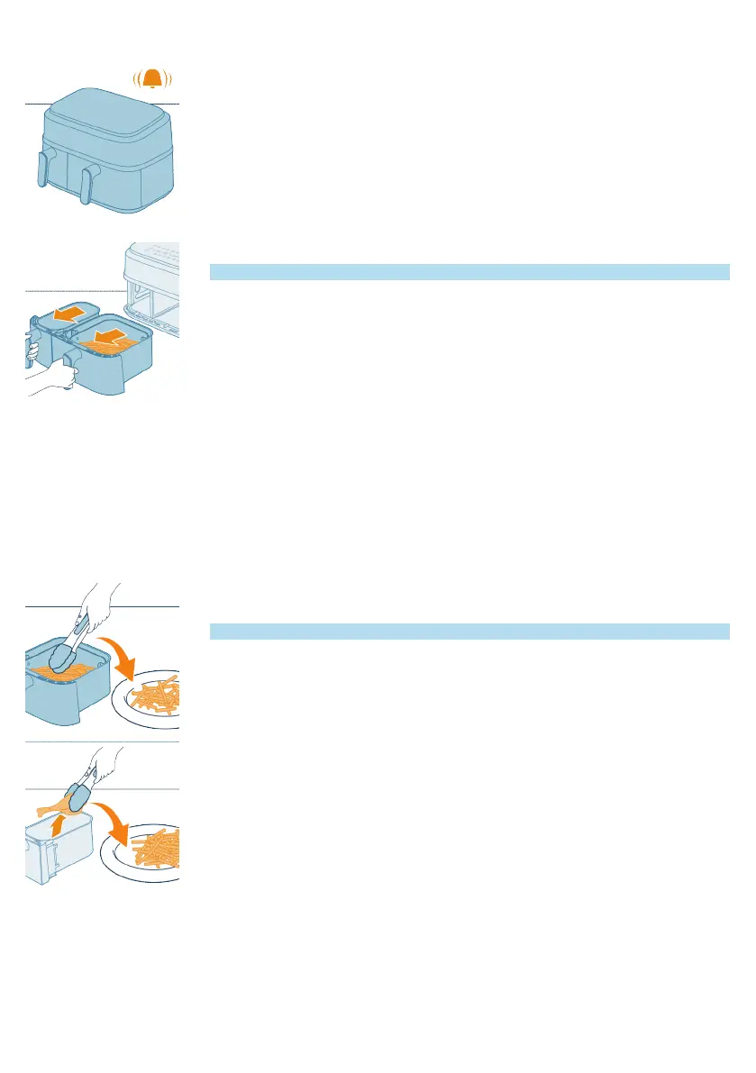 16 Keluarkan bahan-bahan makanan (mis. kentang goreng) dengan hati-hati