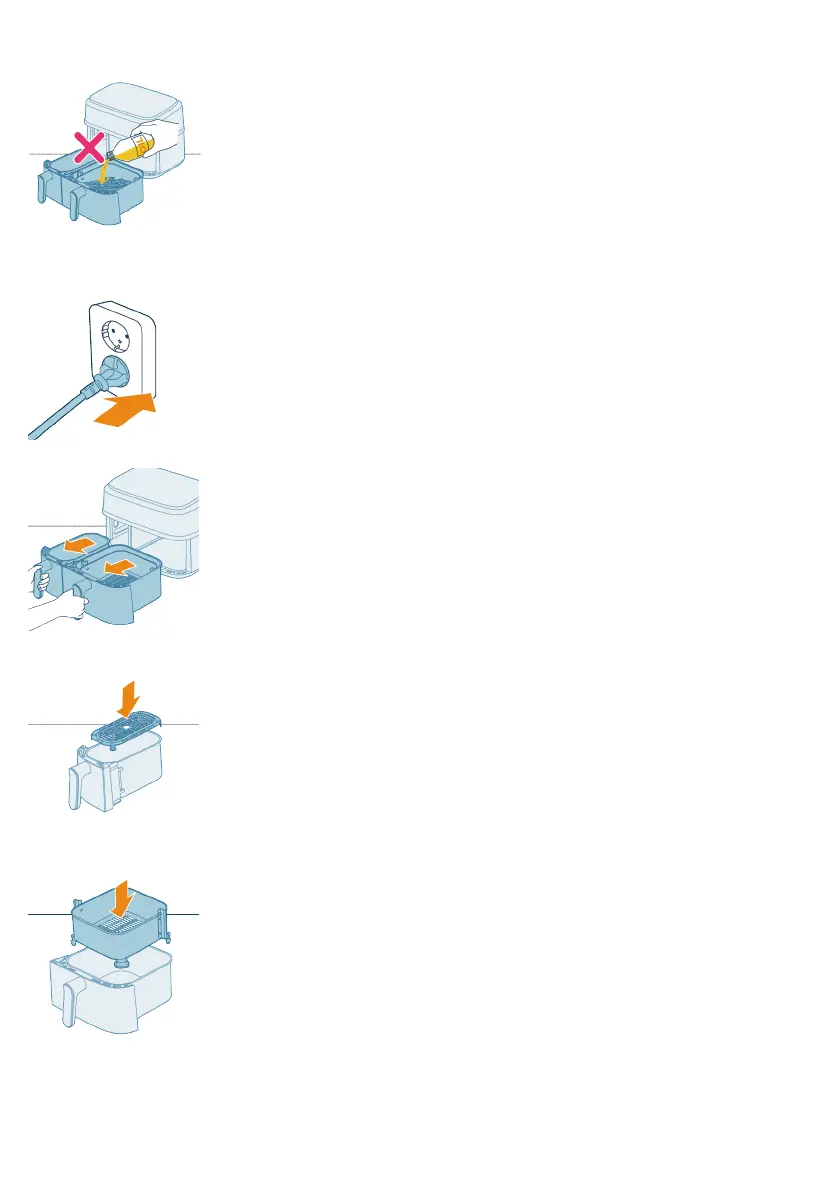 This is an Airfryer that works on hot air. Do not fill the pan with oil,