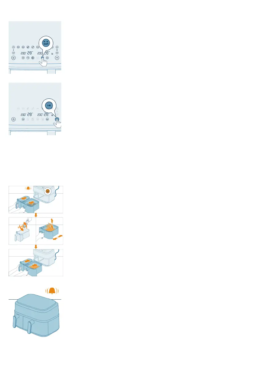 Nhấn nút Bắt đầu/Dừng lần nữa. Cả hai ngăn tiếp tục nấu.