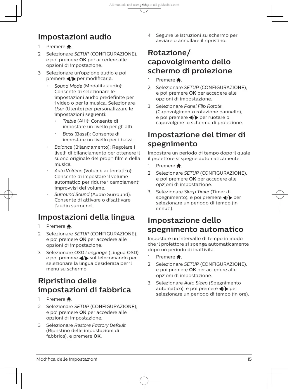 2 Selezionare SETUP (CONFIGURAZIONE),