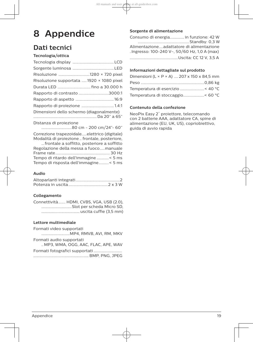 Dimensioni (L × P × A) .... 207 x 150 x 84,5 mm