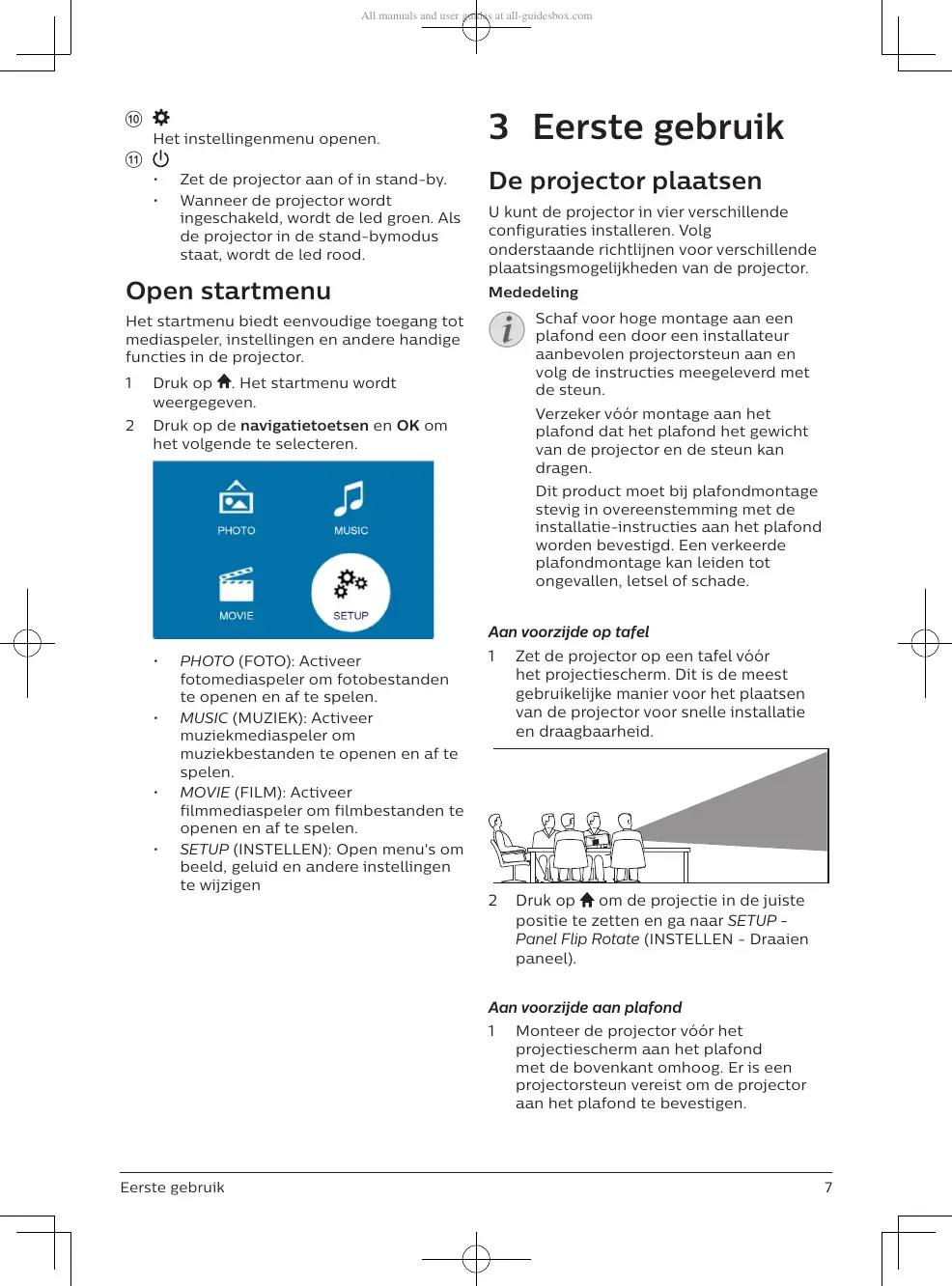1 Zet de projector op een tafel vóór