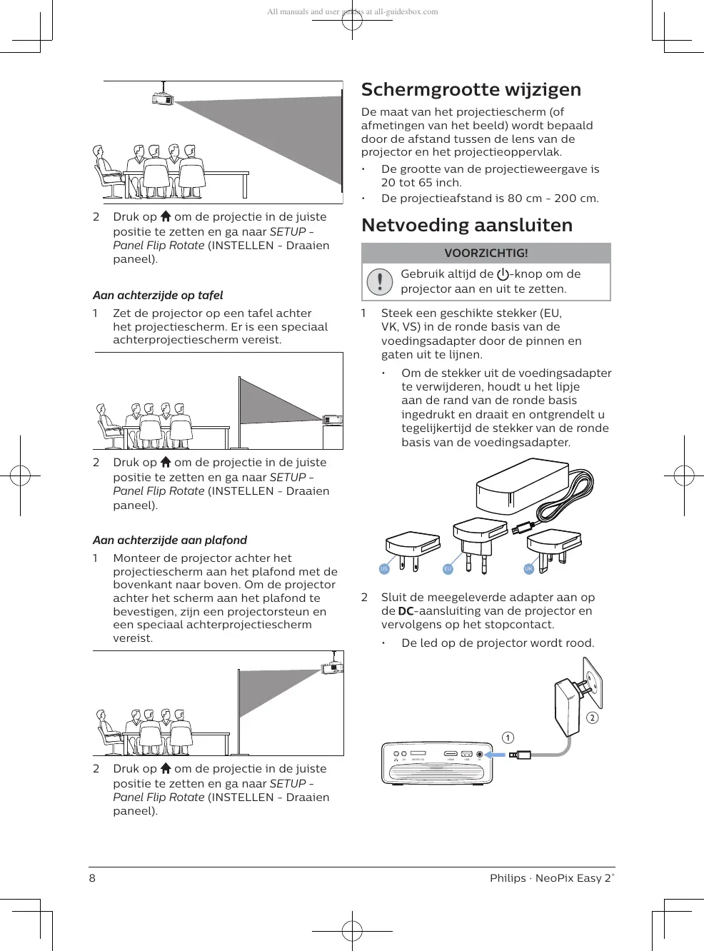 • De projectieafstand is 80 cm - 200 cm.