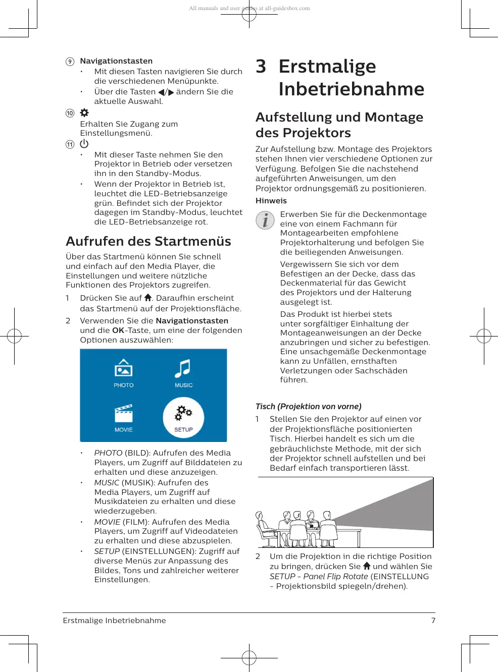 Zur Aufstellung bzw. Montage des Projektors