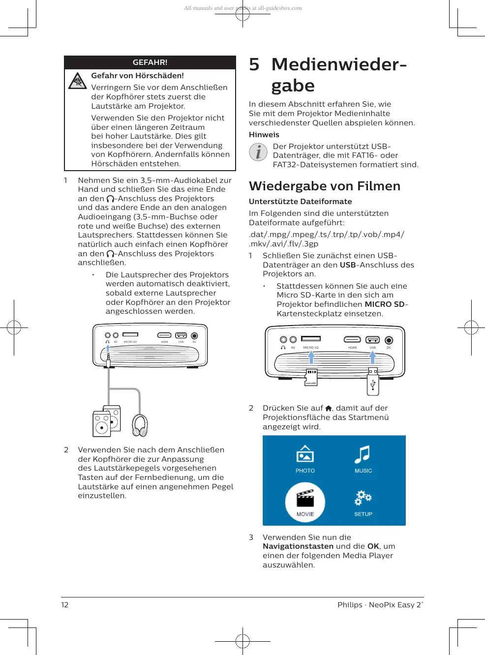 oder Kopfhörer an den Projektor
