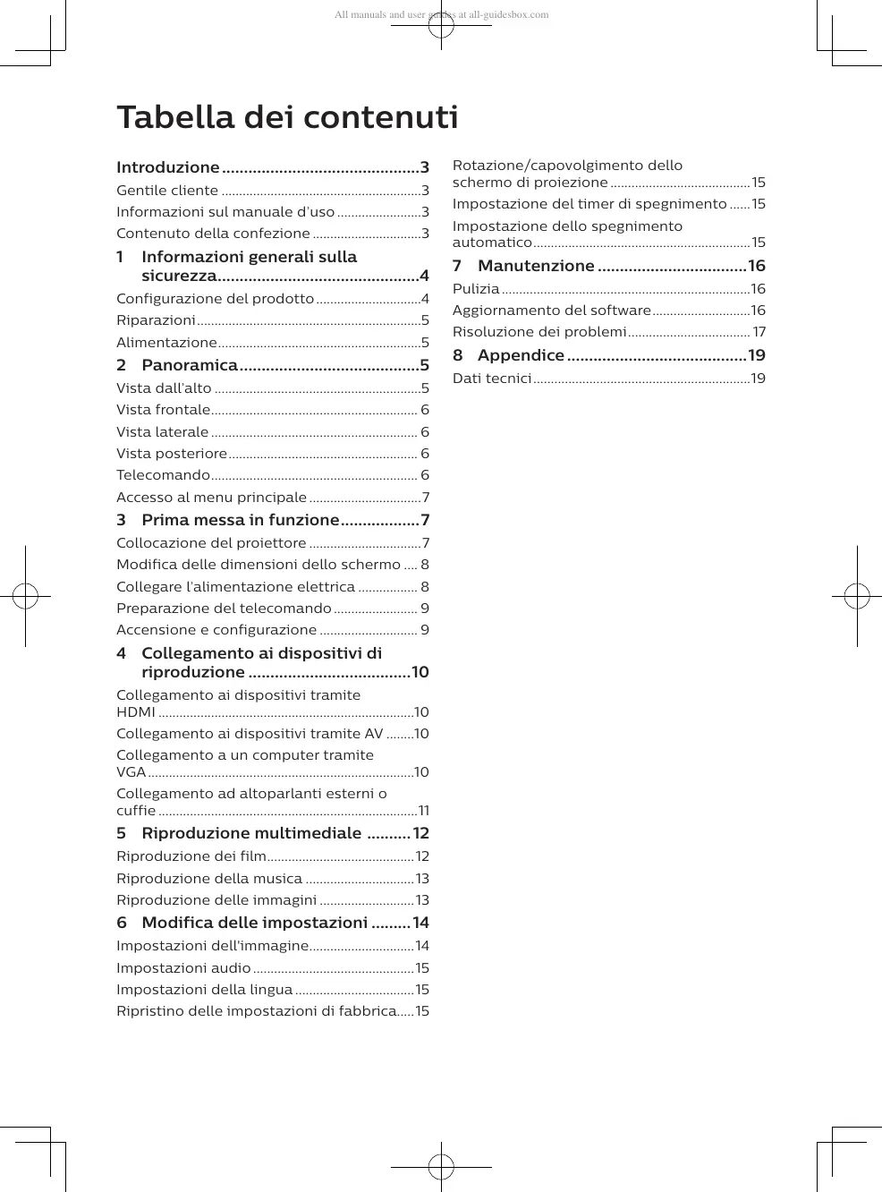 Dati tecnici ..............................................................19