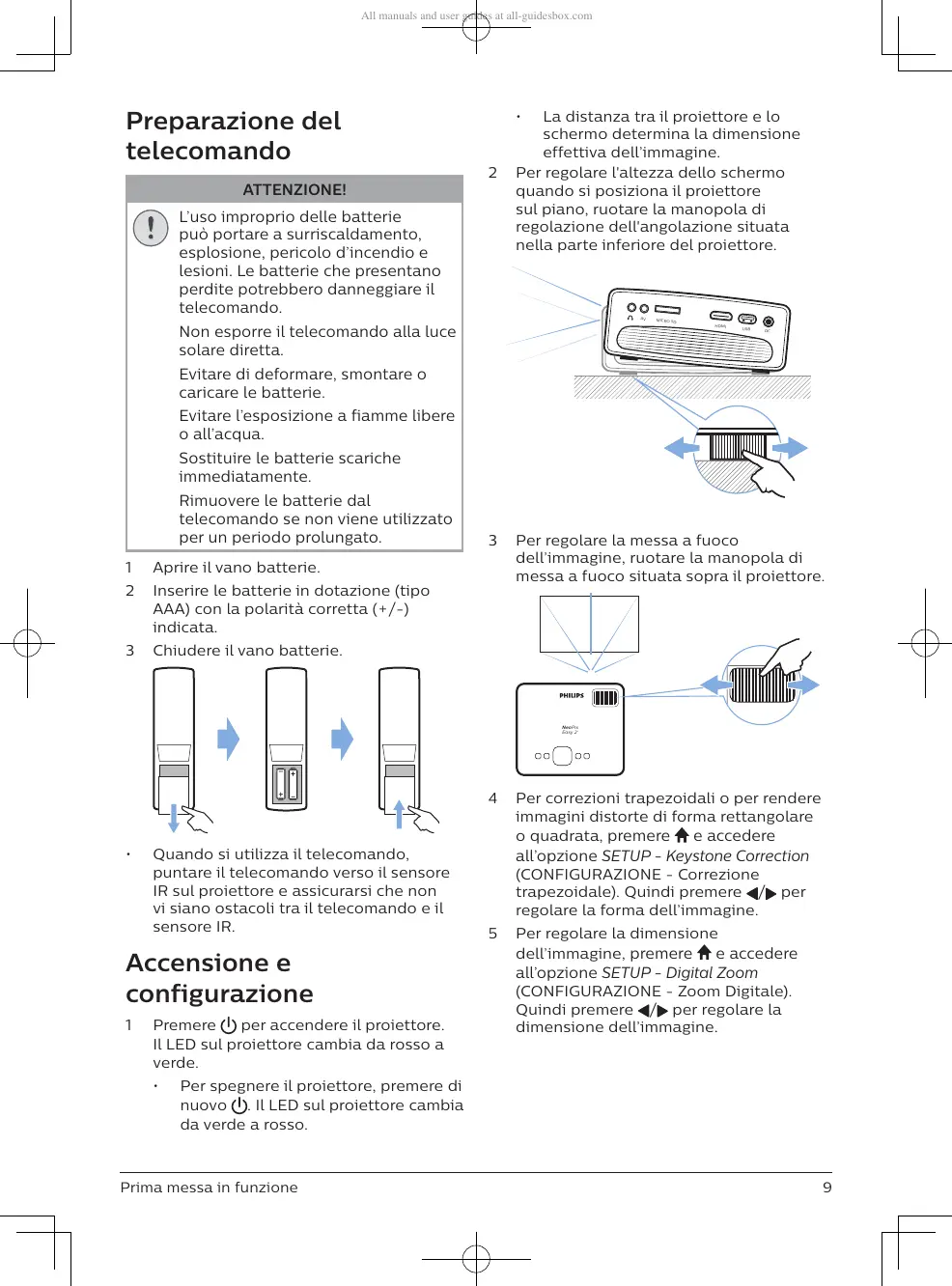 1 Premere per accendere il proiettore.