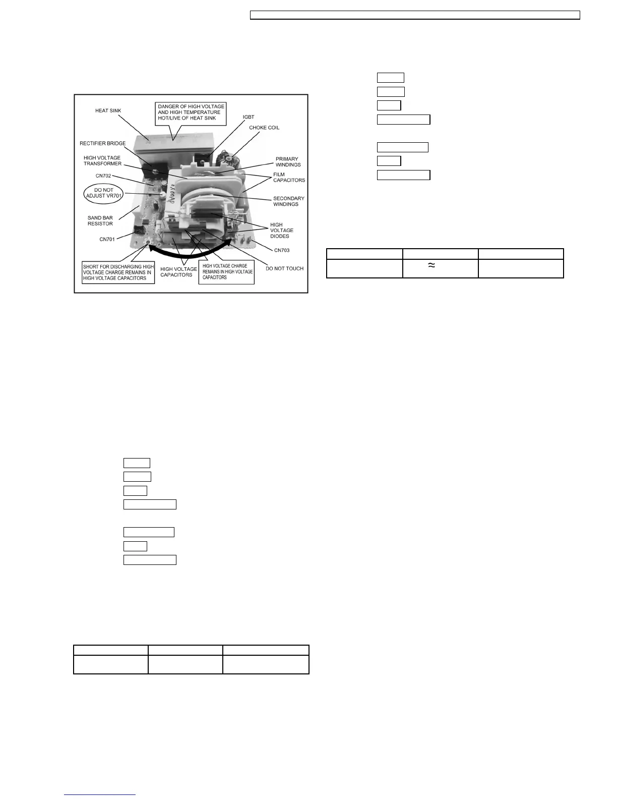 from the wall outlet, unplug the 2 pin H.V. connector CN703