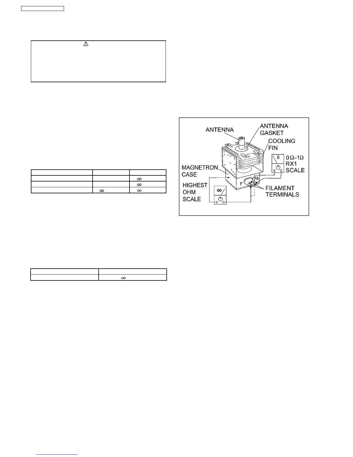 2. A continuity check across magnetron filament terminals