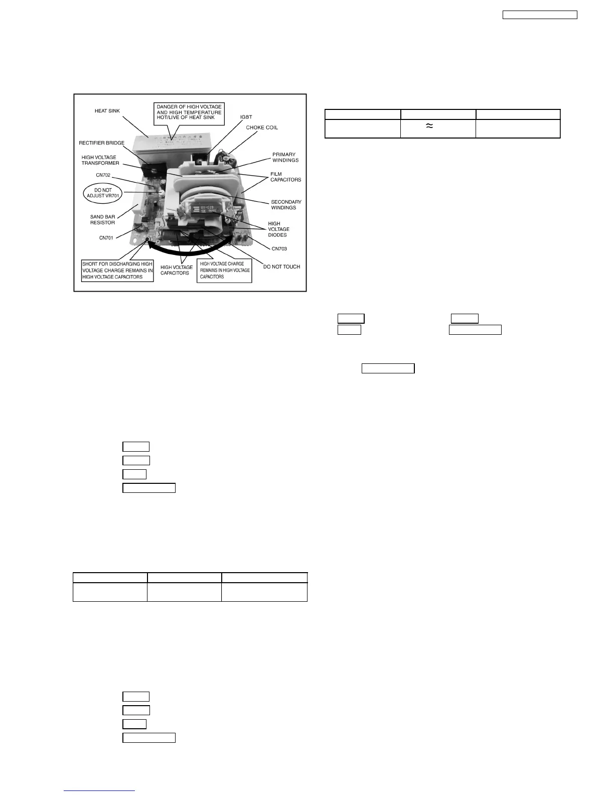 from the wall outlet, unplug the 2 pin H.V. connector CN703