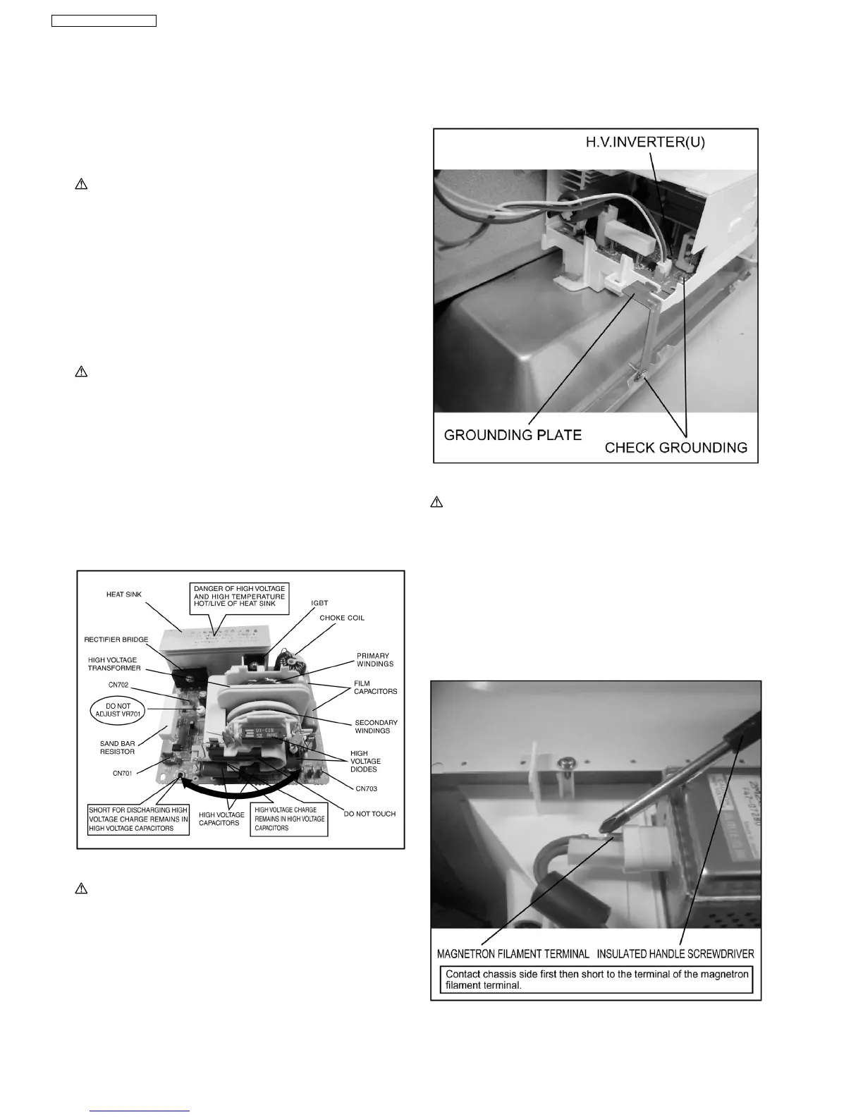 WARNING DISCHARGE THE HIGH VOLATGE