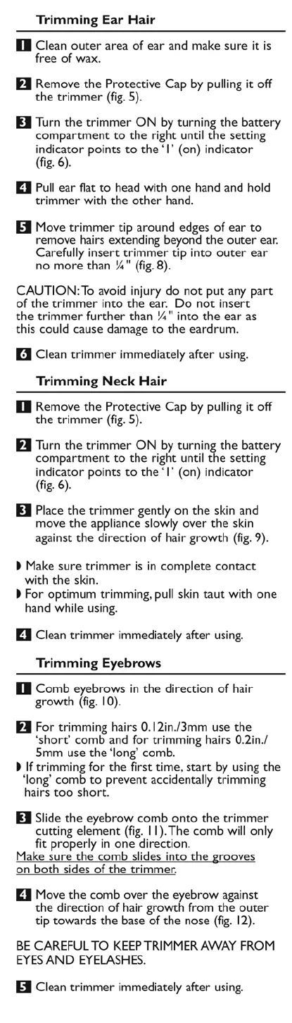 Philips NORELCO NT9110 - Trimming Ear Hair; Ear Hair Trimming Procedure; Trimming Neck Hair; Neck Hair Trimming Procedure