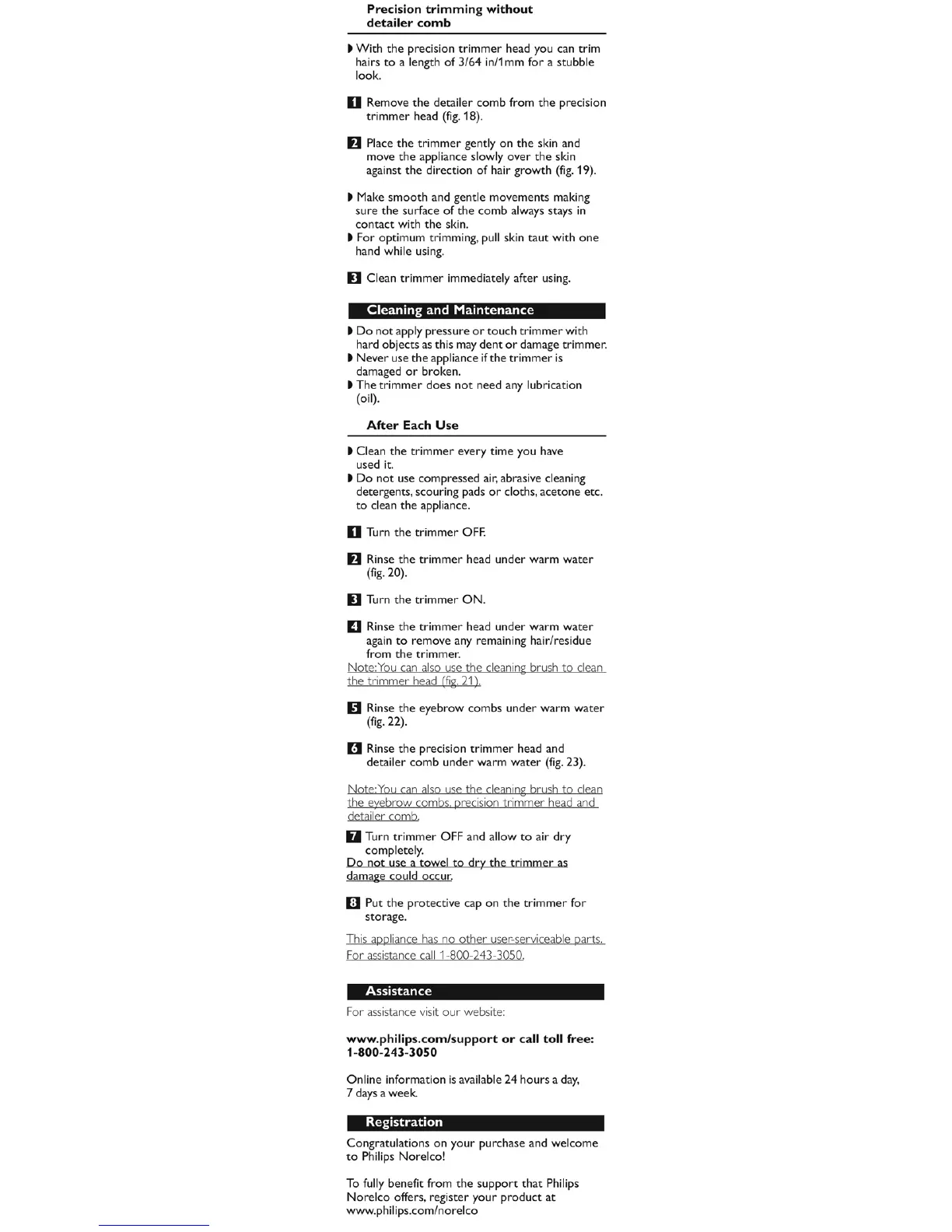 Philips NT9130/40 - Precision Trimming Without Detailer Comb; Stubble Look Trimming; Cleaning and Maintenance; Maintenance Guidelines