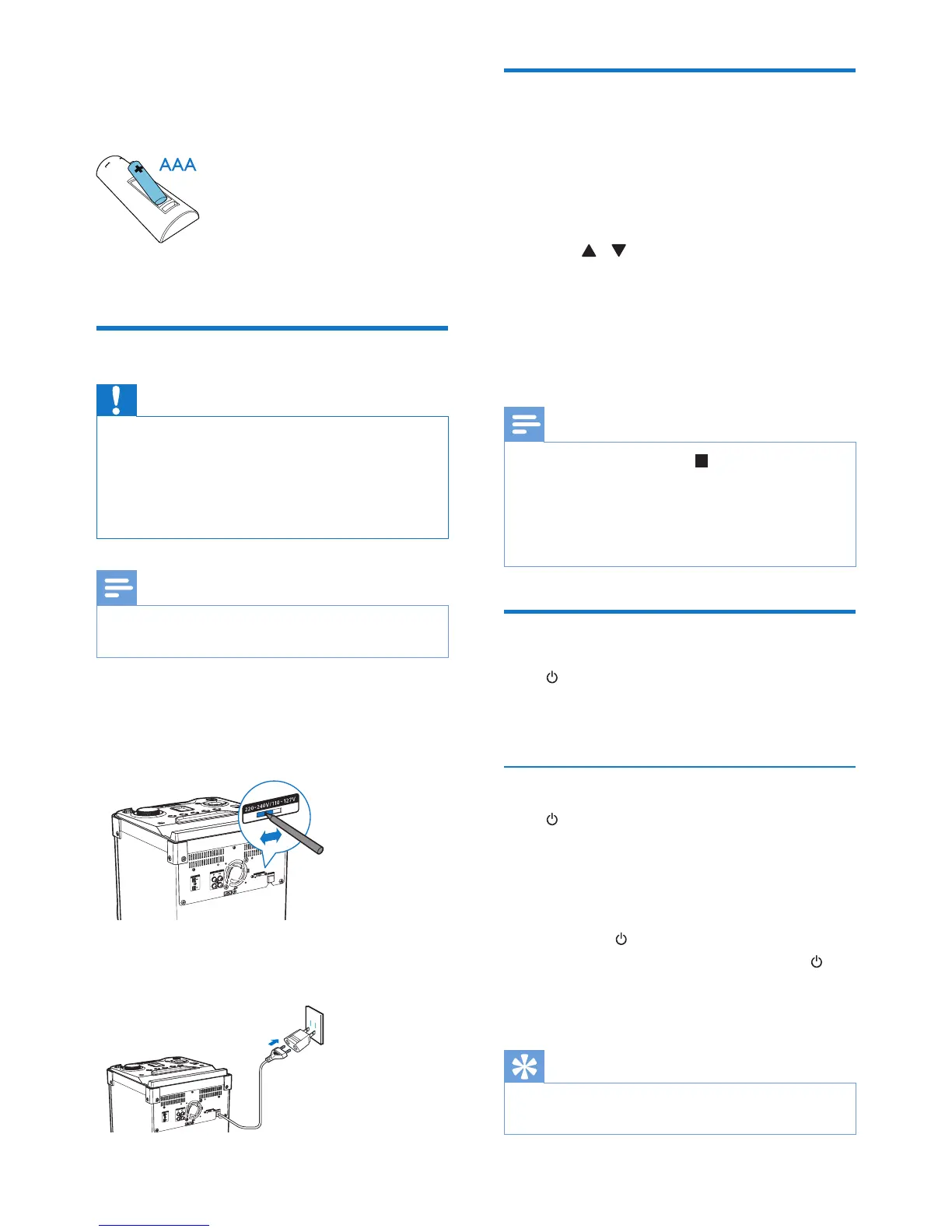 1 Adjust the voltage selector on the back of