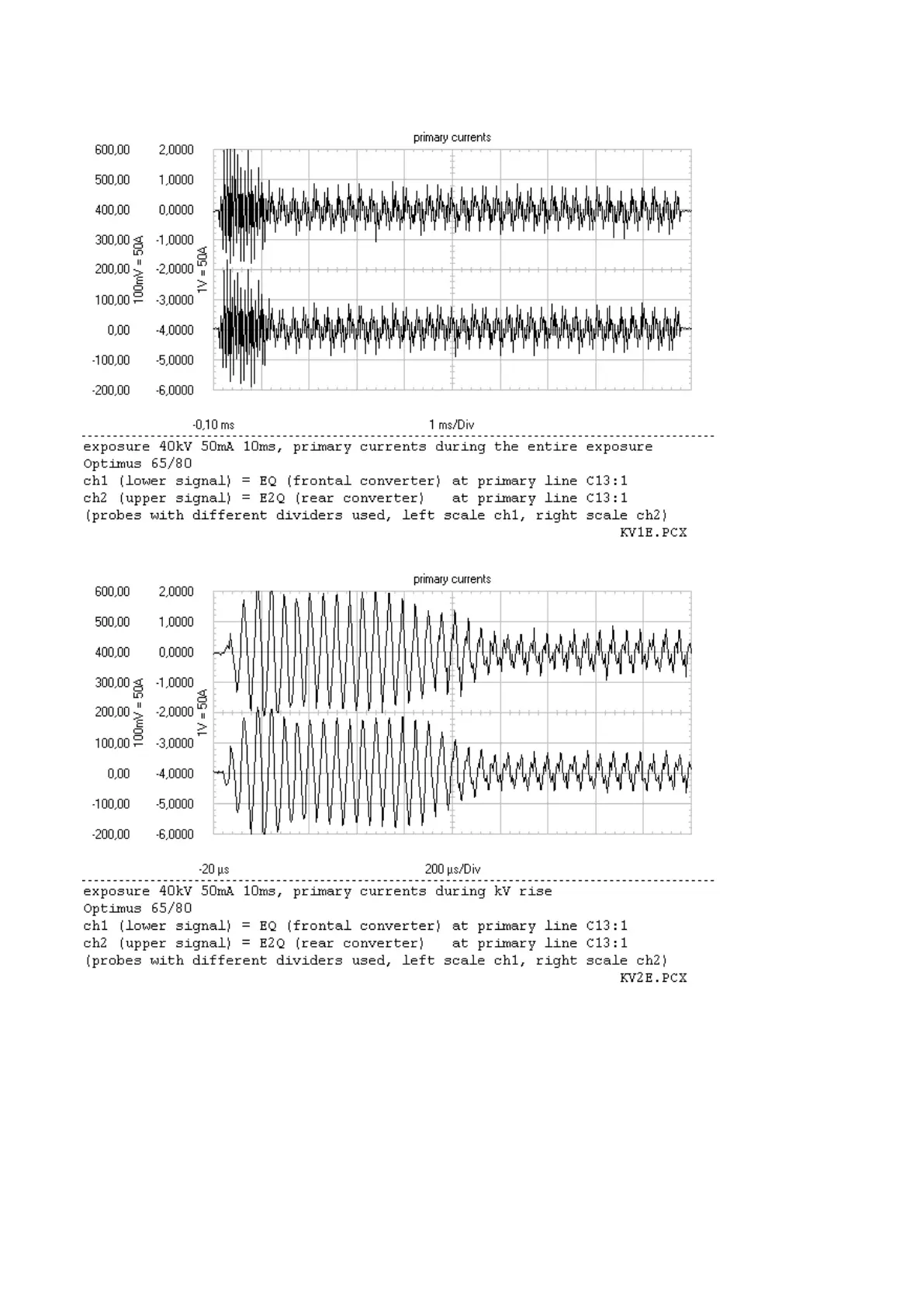 The primary current values must be within the range of the lower chart ±10%.