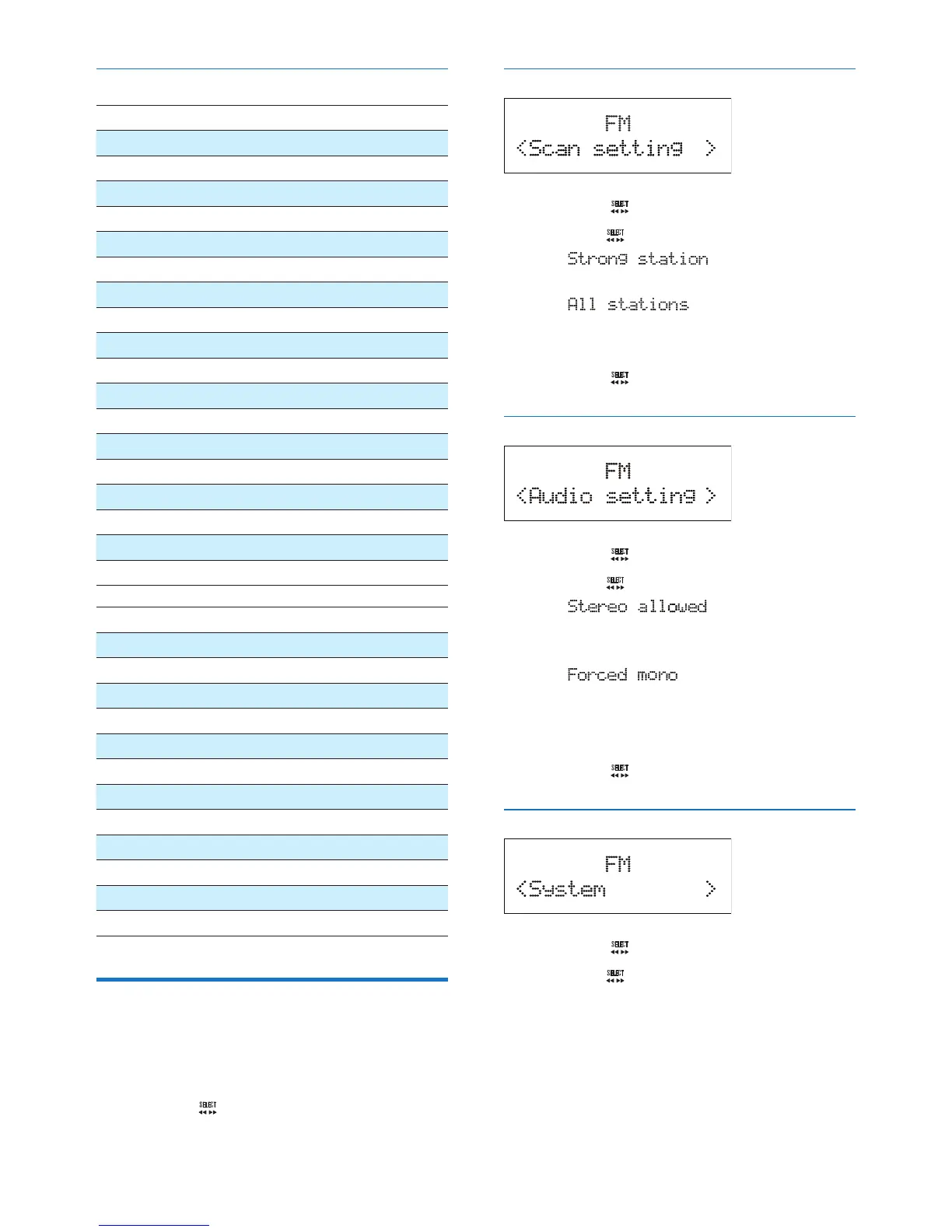 1 In FM mode, press MENU to access FM
