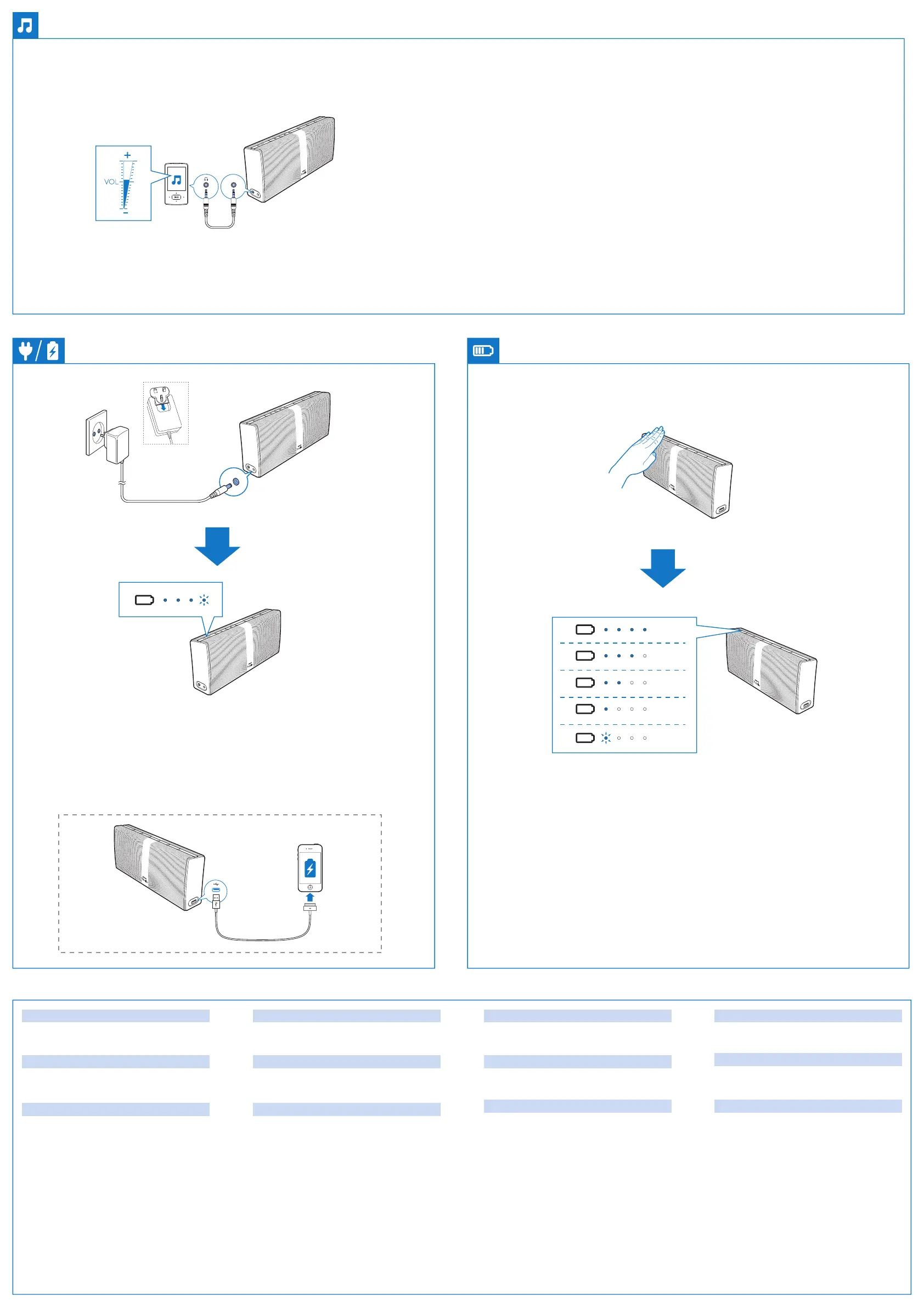 To check the battery level, touch the speaker. The power LEDs light up. The red light flashes when the battery is low.