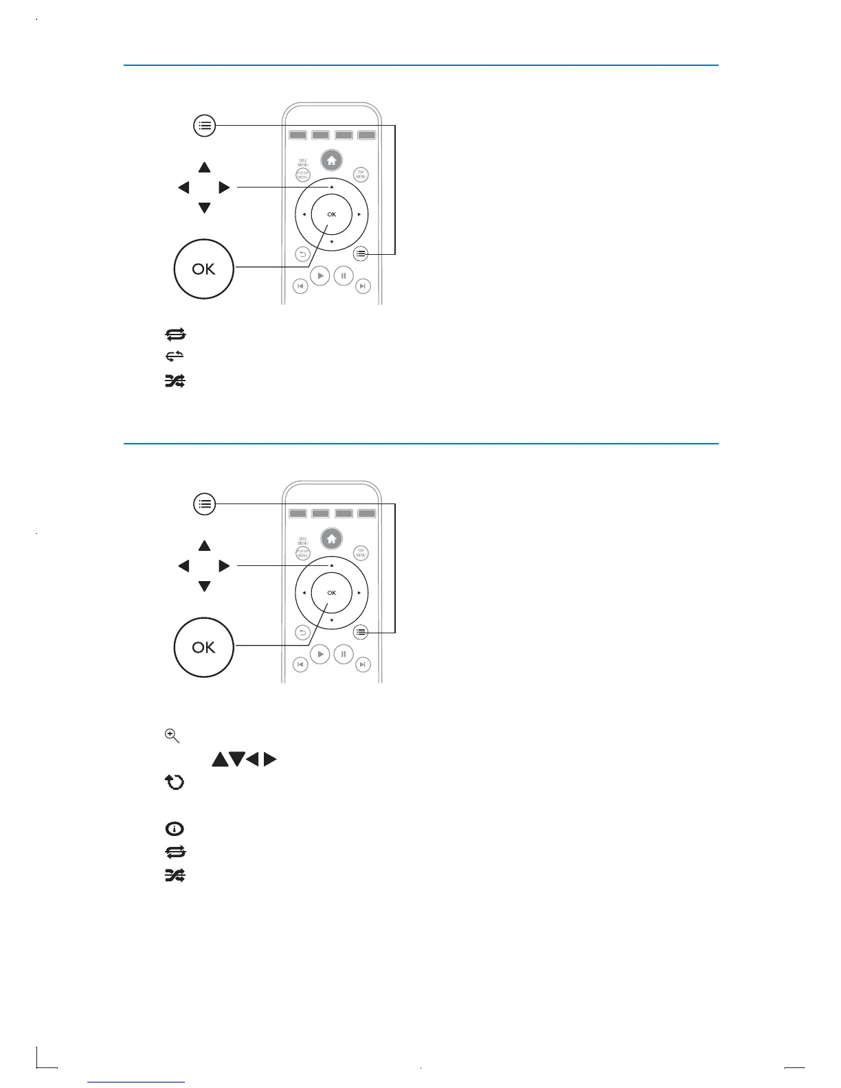 • [REPEAT]: Repeat one, repeat folder or turn repeat off.