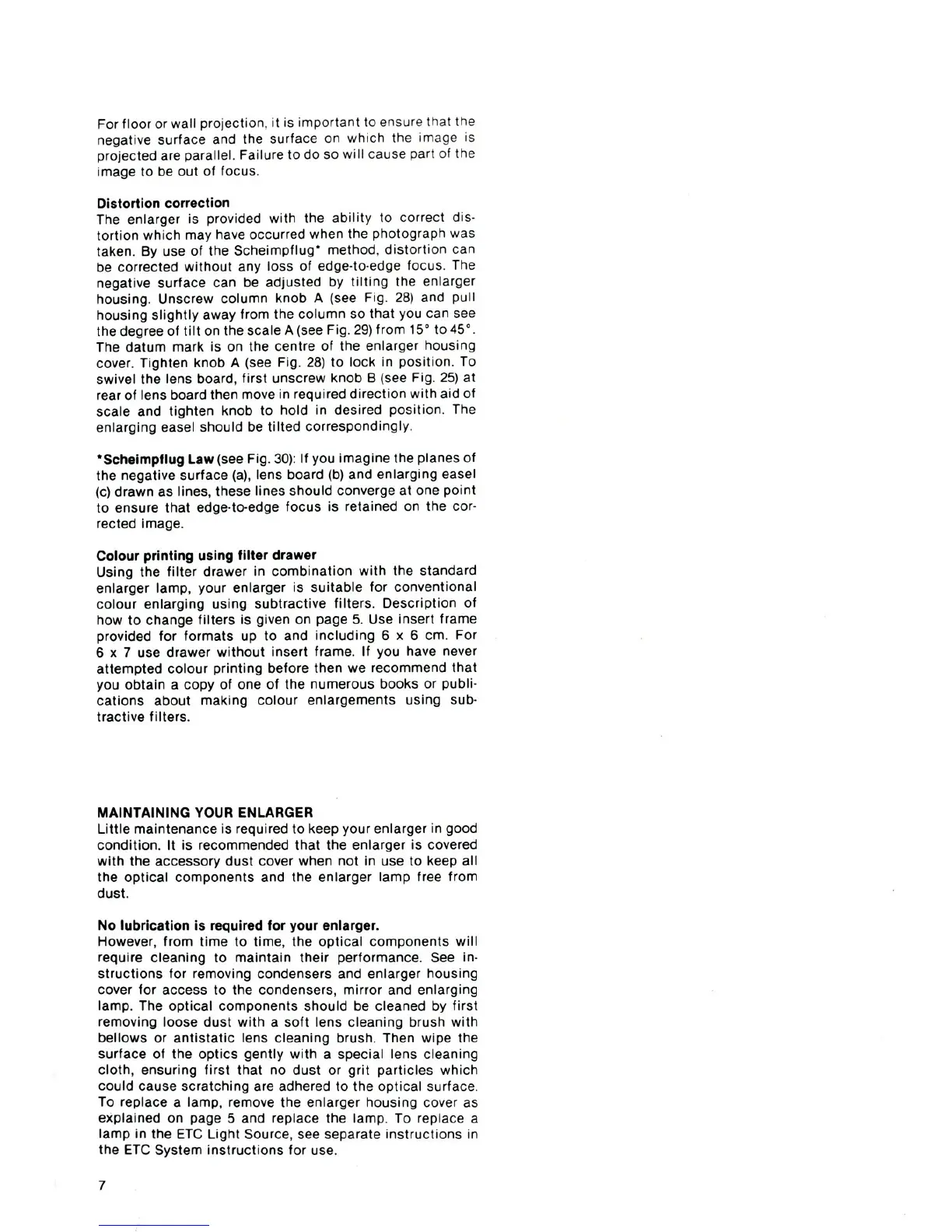 Philips PCS 130 - Enlargements Off the Baseboard; Maintaining Your Enlarger