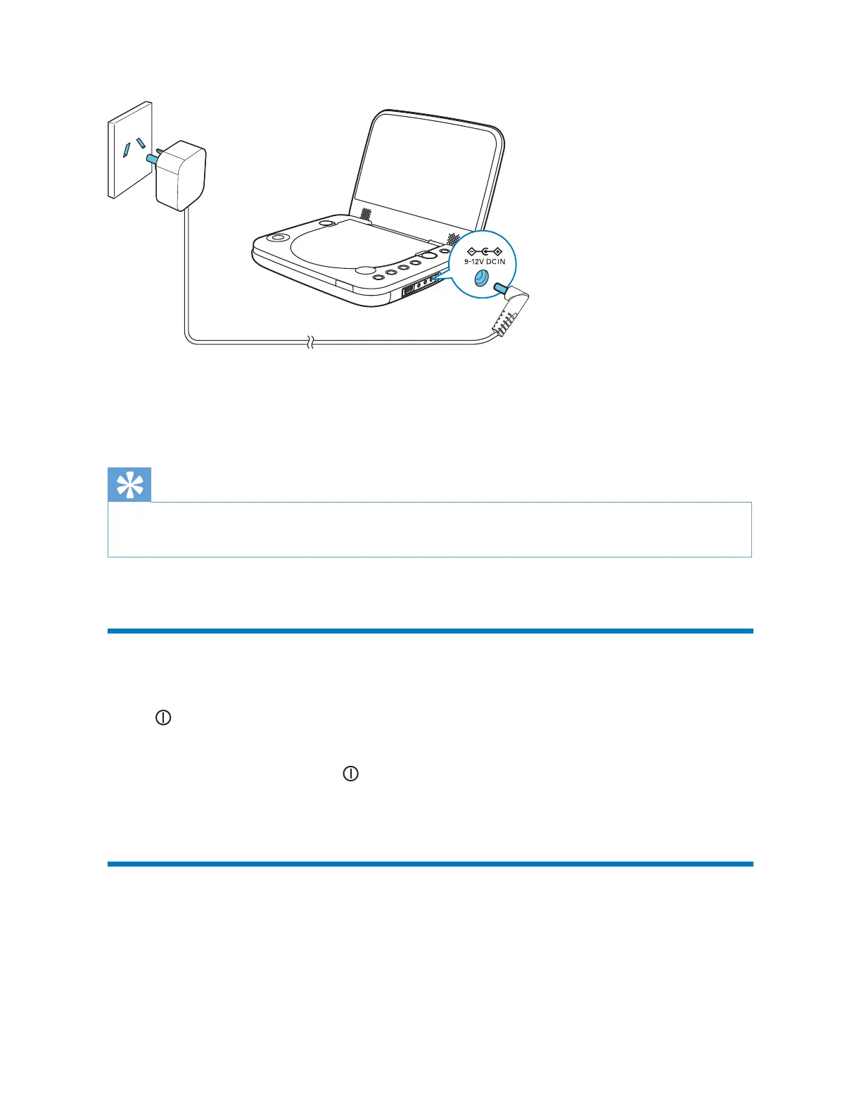 2 Connect the supplied AC adapter to the player and to the AC outlet.