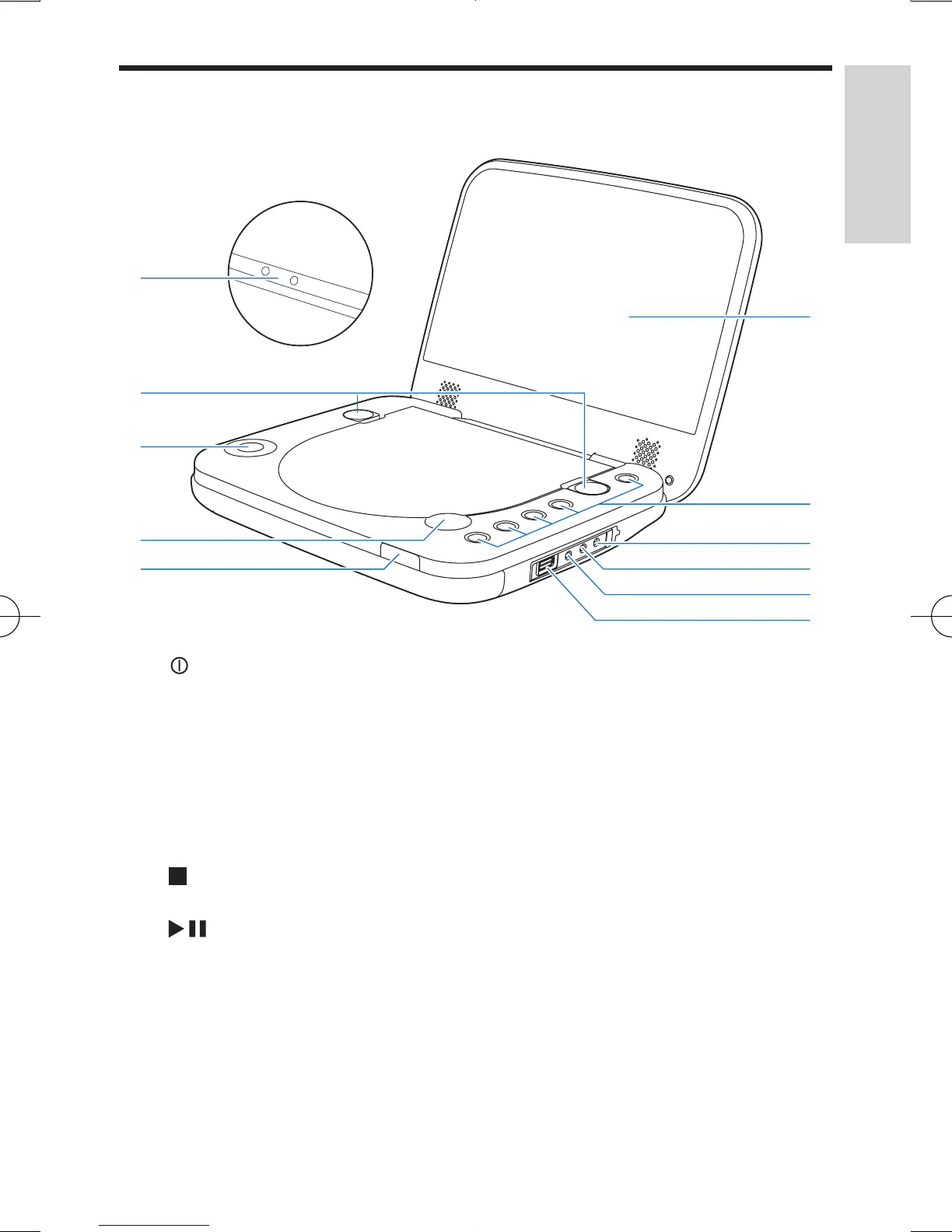 • Turns on/off DVD player.
