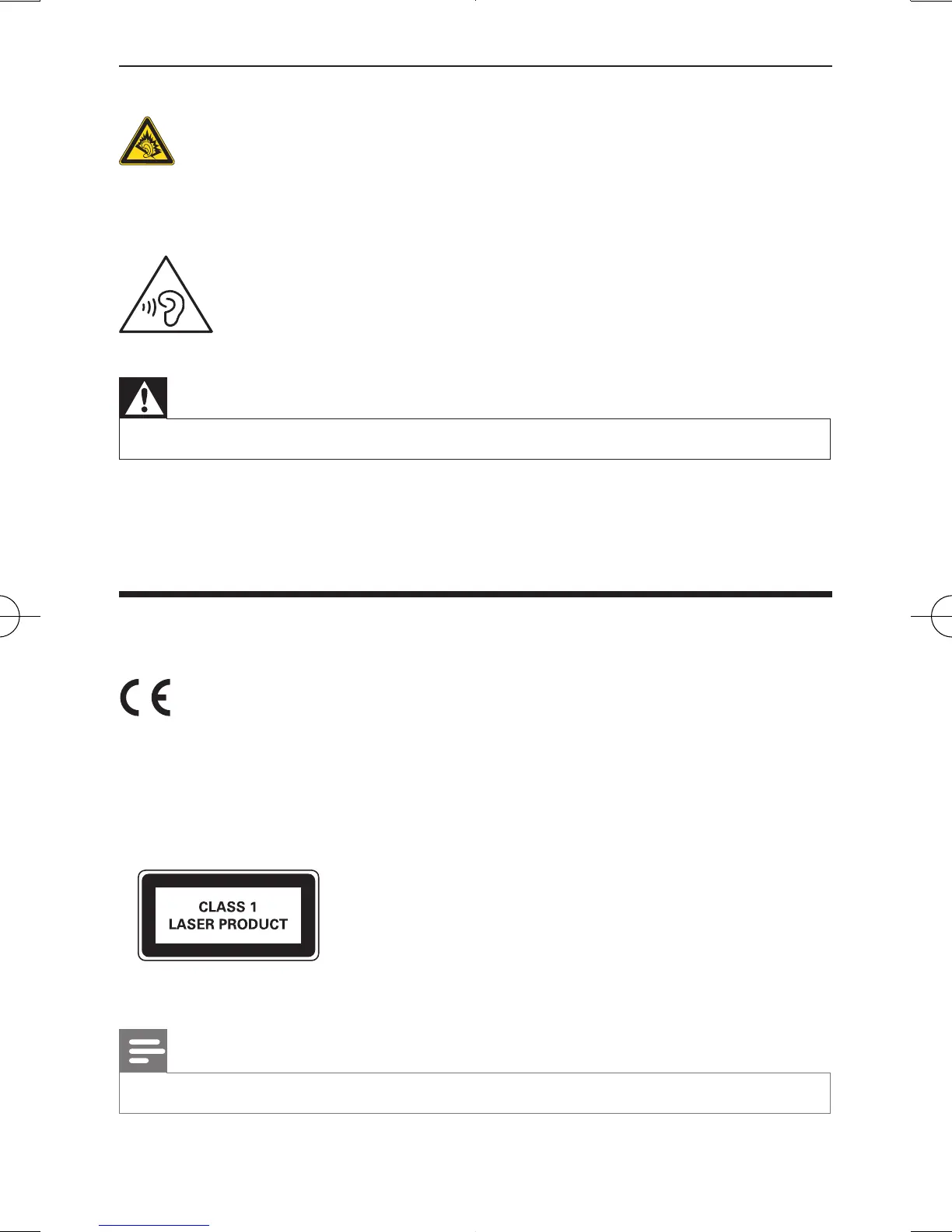 • To prevent possible hearing damage, do not listen at high volume levels for long periods.