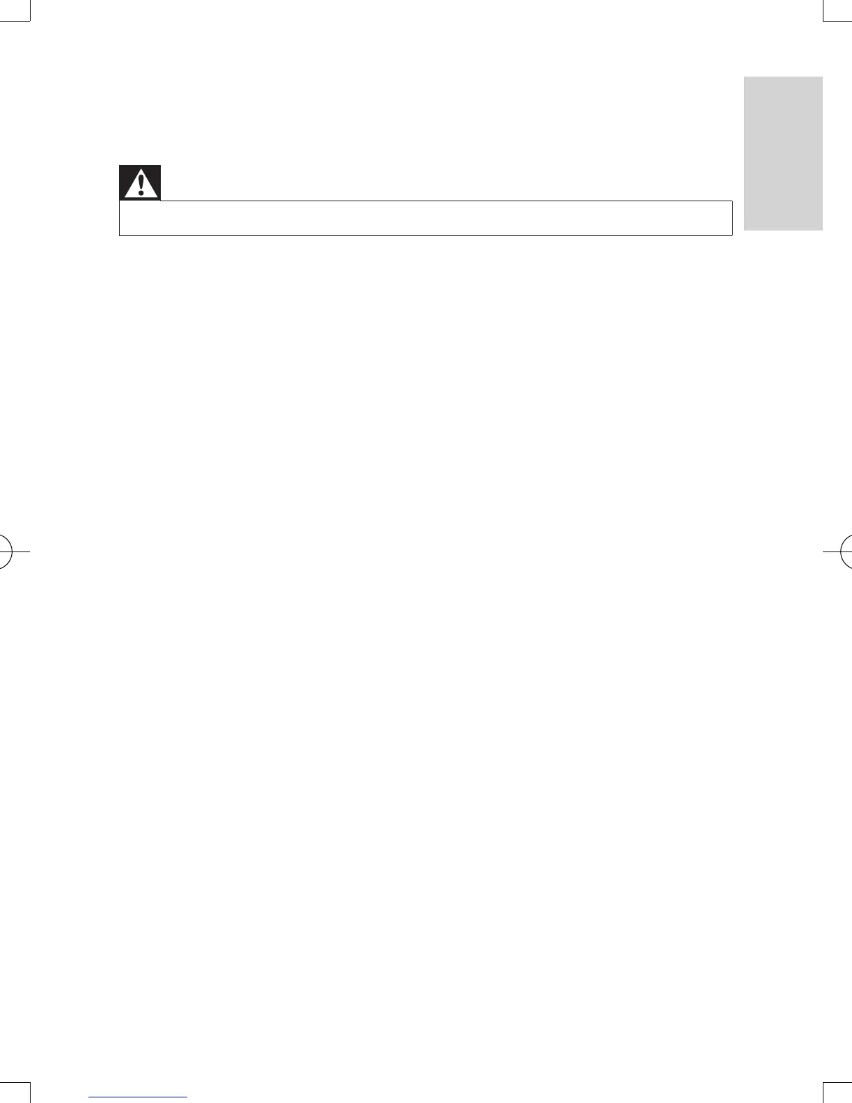 • Risk of electric shock. Never remove the casing of the player.