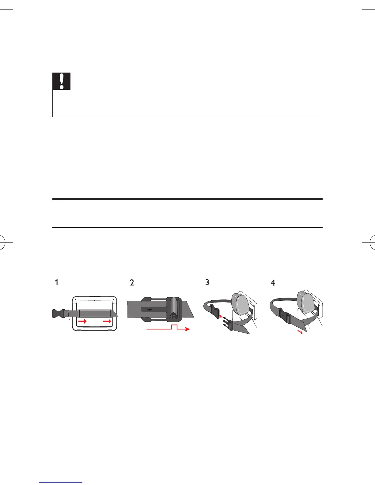 1 Pull the strap through the loops on the back of the main unit.