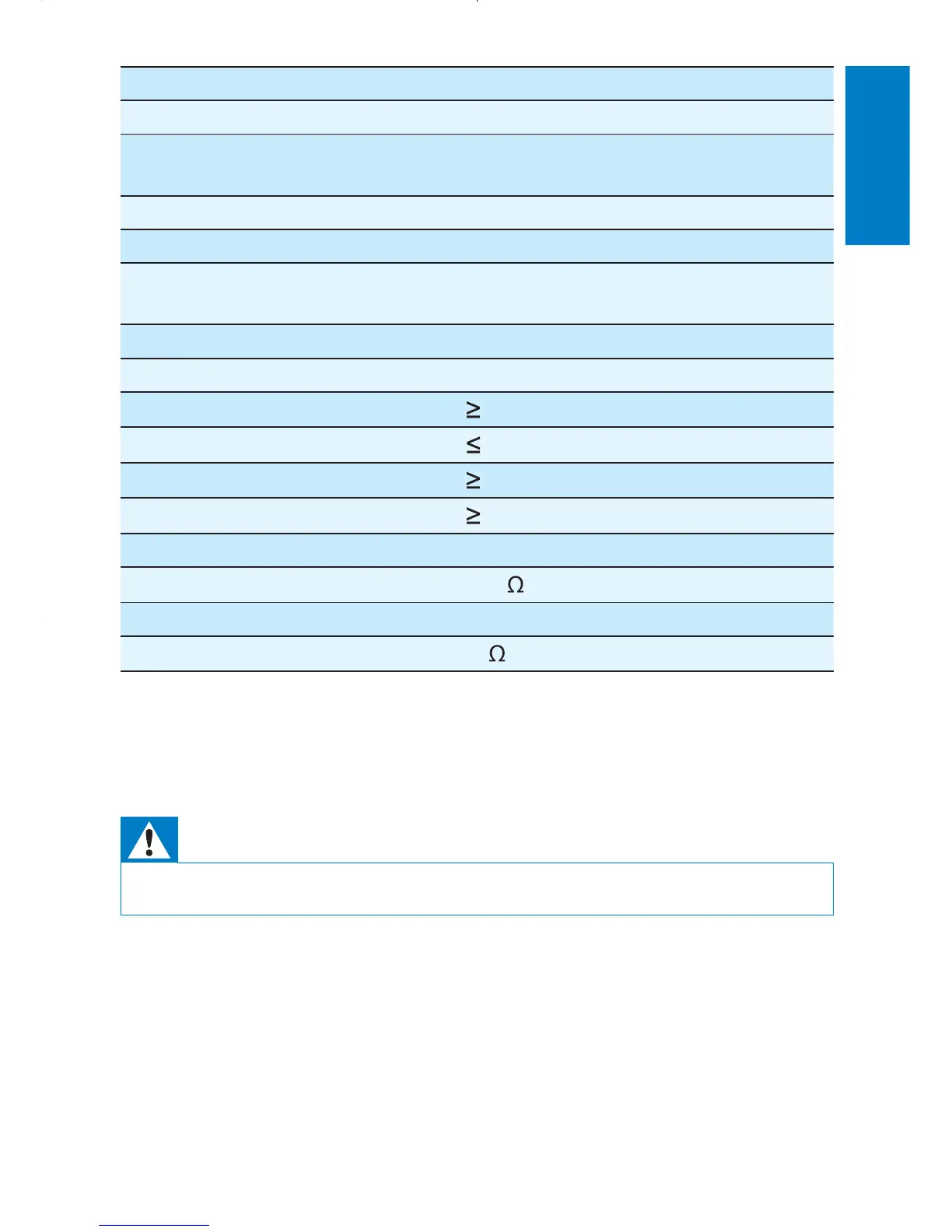 Risk of electric shock. Never remove the casing of the player. •