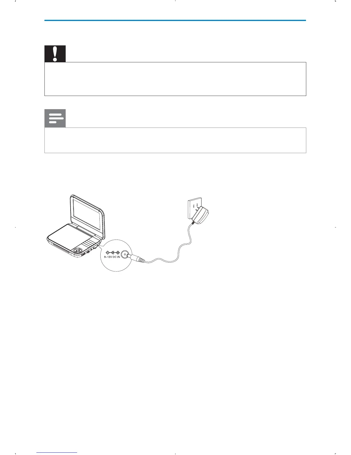 2 Connect the supplied AC adaptor to the player and to the AC outlet.