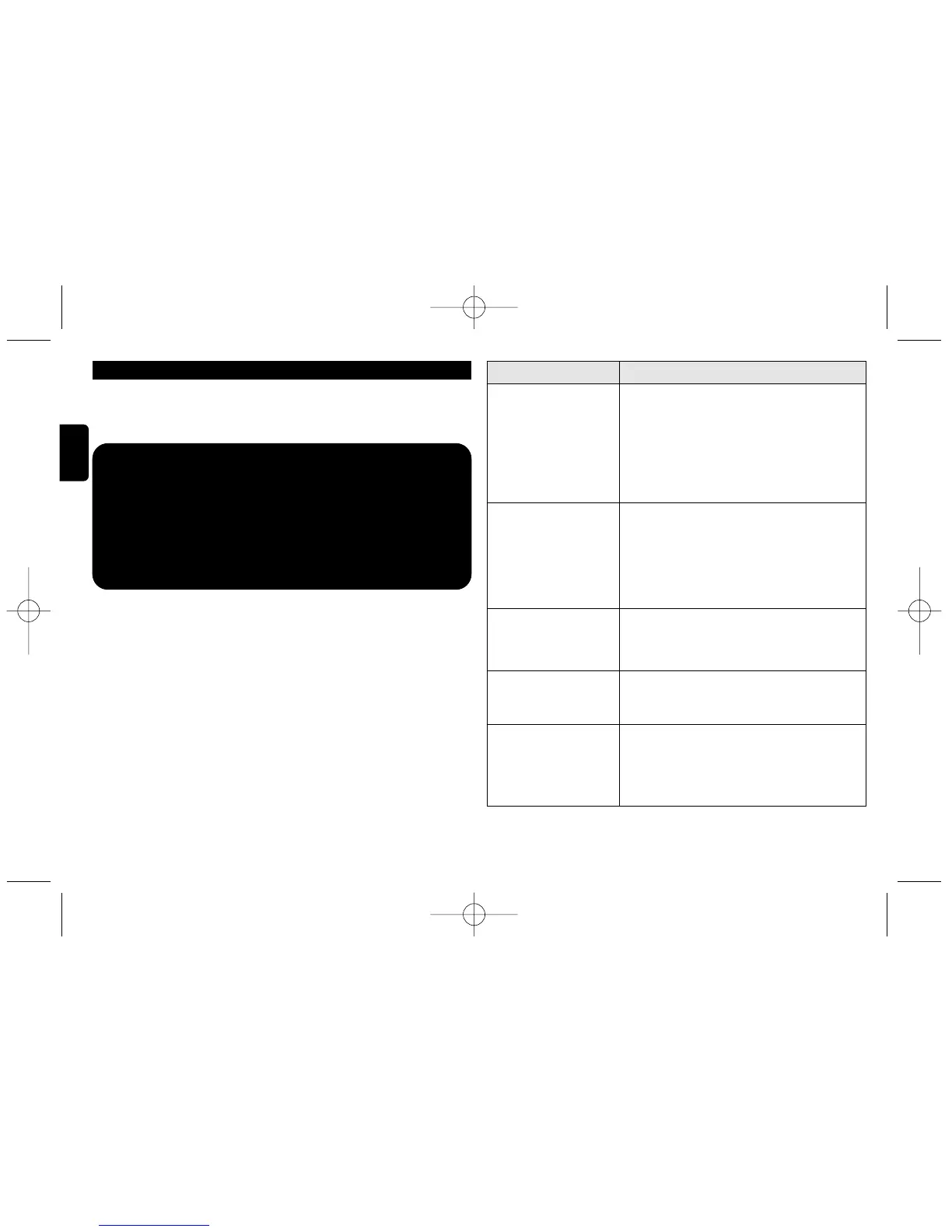Pas d'alimentation • Vérifiez que les deux fiches du cordon