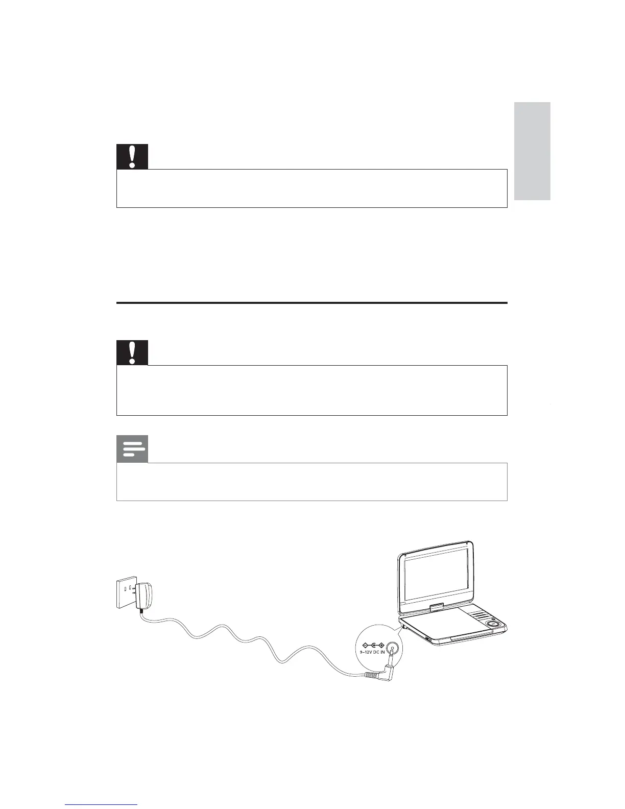 1 Connect the supplied AC adaptor to the player and to the AC outlet.