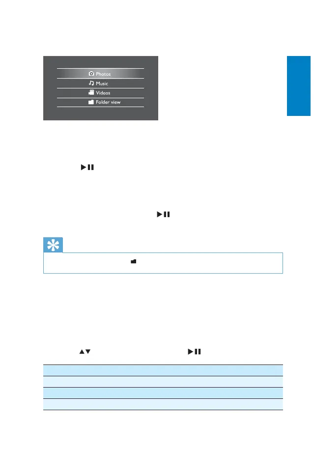 Alternatively, you can select • from the main menu and fi nd your fi les in folder view.