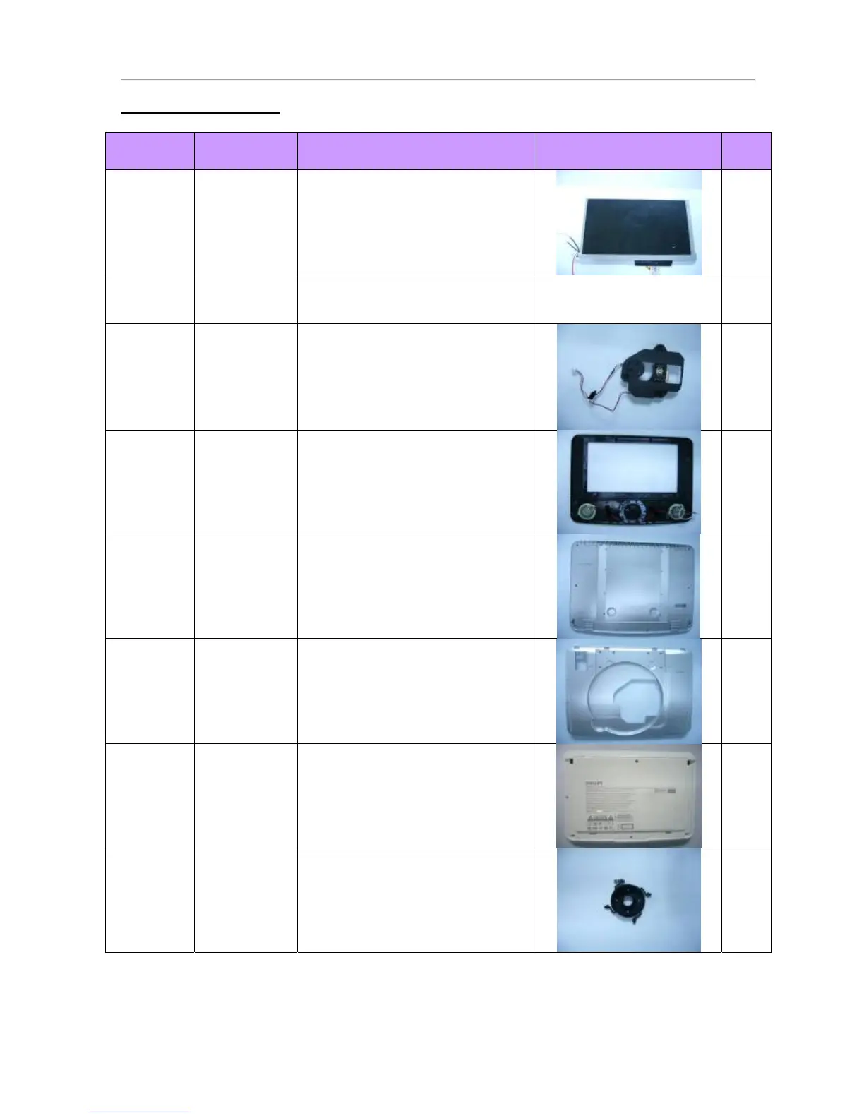 Mechanical Part List: