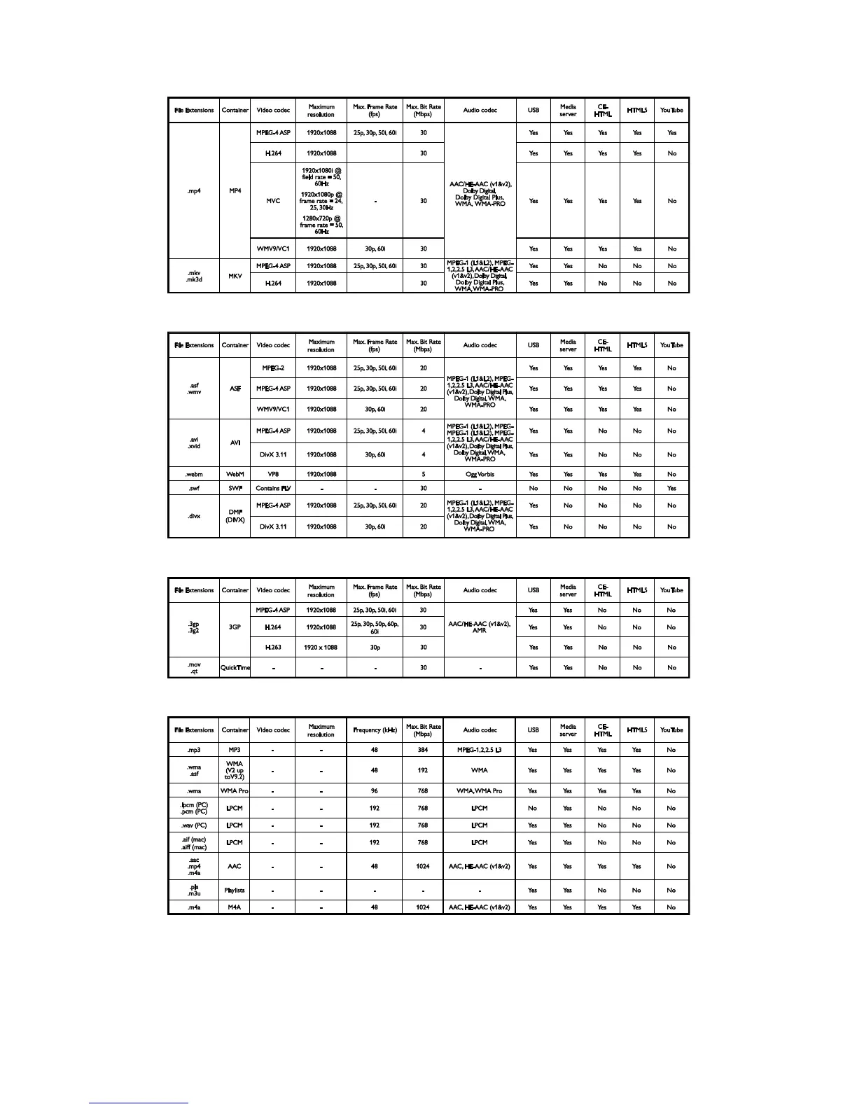 Supported audio/video formats