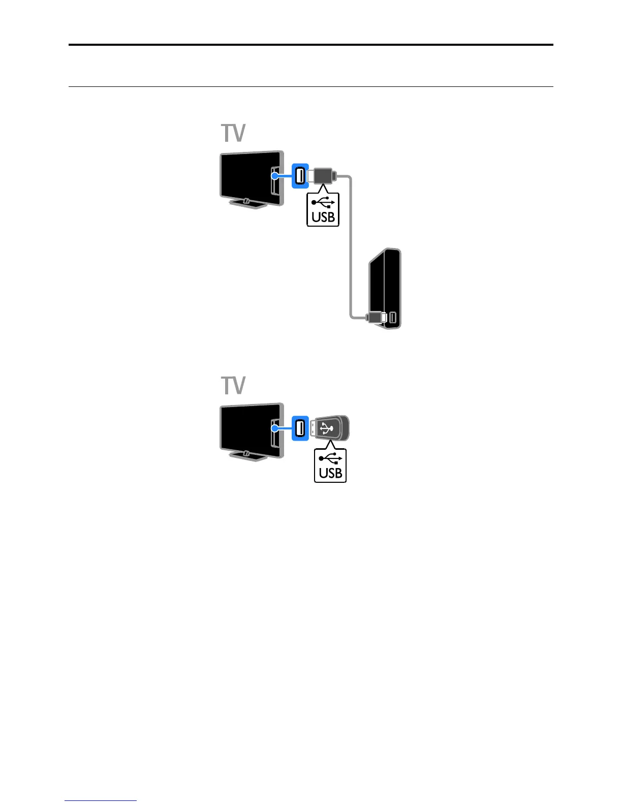 Connect the USB flash drive with a USB cable to the TV.