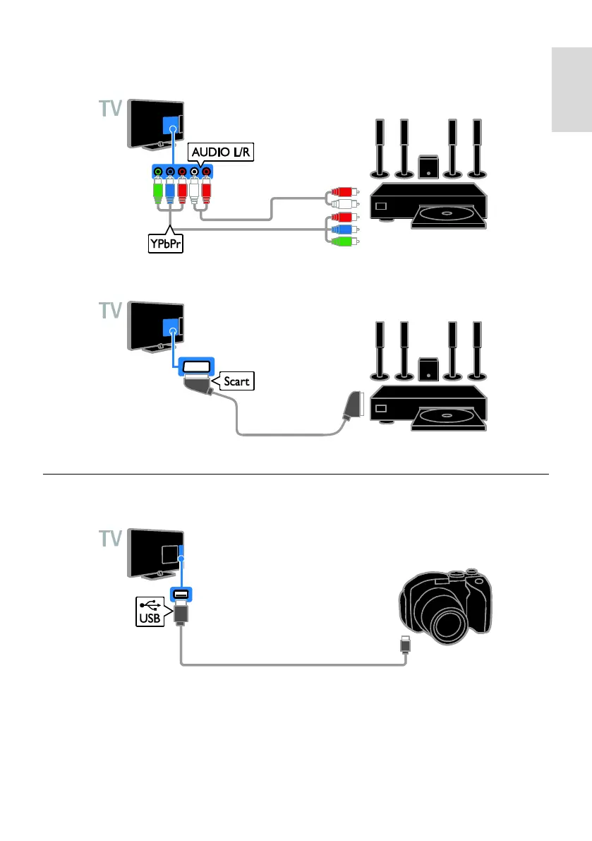 Connect the home theatre to the TV with a component video cable (Y Pb Pr) and an audio L/R